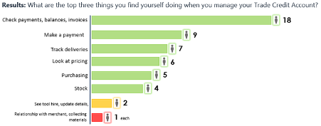 To support how to improve the functionality and information in ‘My Account’ identifying the areas that were most important to our tradespeople in supporting them to ‘Get the job done’. The target customers were our most valuable and loyal credit account customer who use our credit accounts to help them run their own businesses by paying a monthly bill.