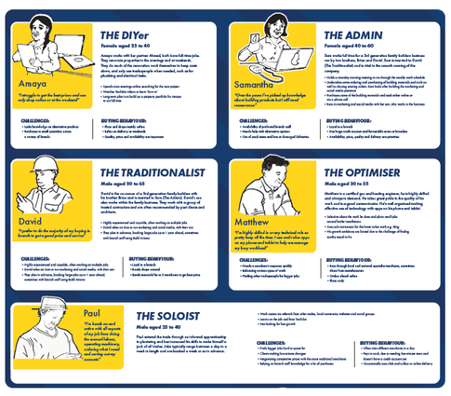 Sunny and Nicholas = ‘The traditionalist’ don’t tend to buy online because the discounts/prices they get and the level of customer service in Branch aren’t matched online. They are typically loyal to at least one main building supplier where they’ll get the majority of what they need at a good discounted price. Sunny says - “anything that saves time is a help from a building supplier”. They’re organised and have everything ready each day for their teams to get the job done, they will do all the running around and arrange for the materials to be on site, whether that’s by collecting or getting them delivered.